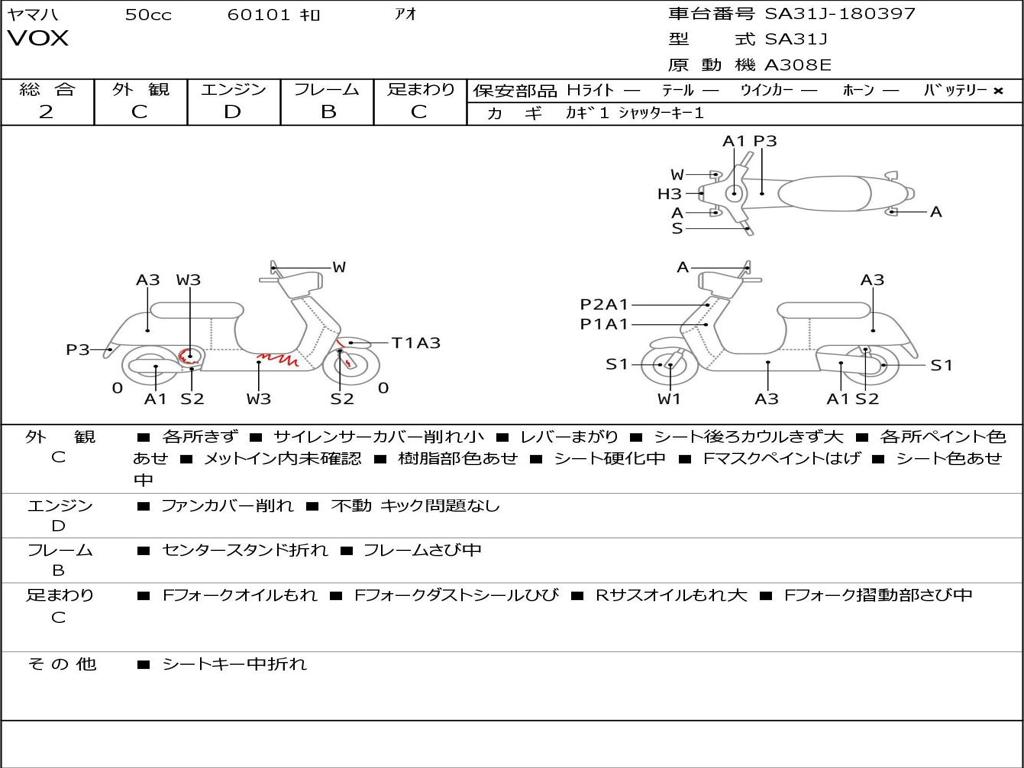 | Номер рамы / VIN | SA31J-180397 |