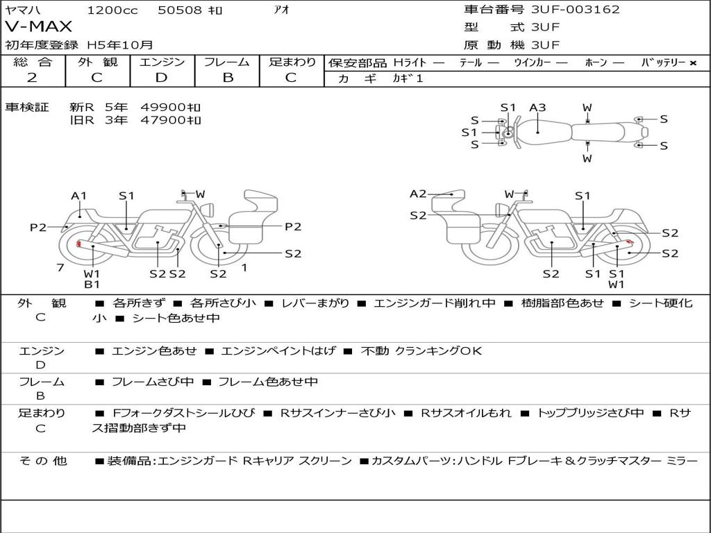 | Номер рамы / VIN | 3UF-003162 |