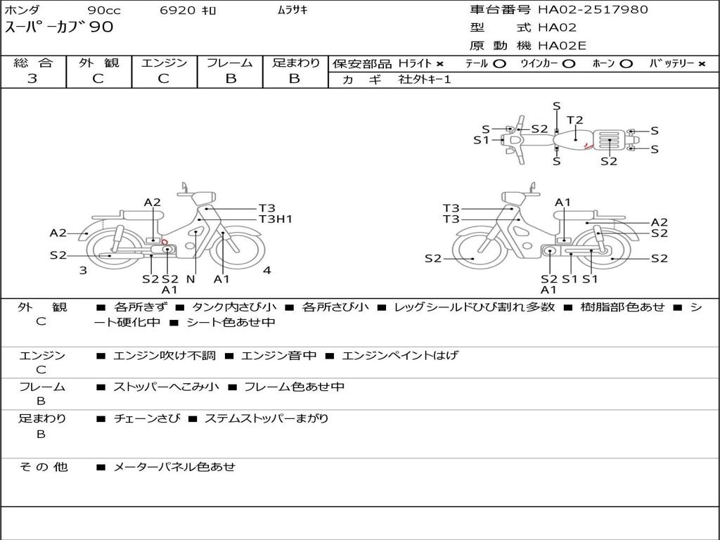 | Номер рамы / VIN | HA02-2517980 |