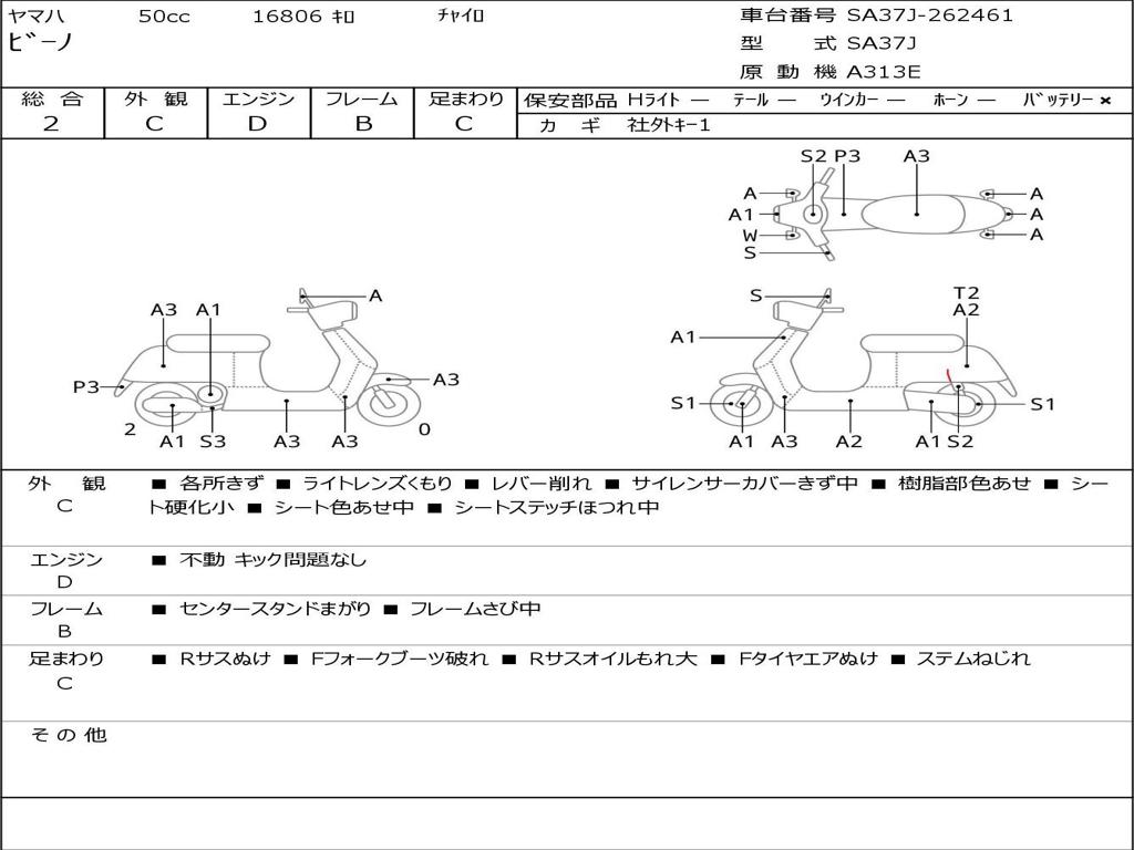 | Номер рамы / VIN | SA37J-262461 |