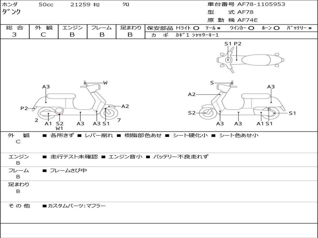 | Номер рамы / VIN | AF78-1105953 |