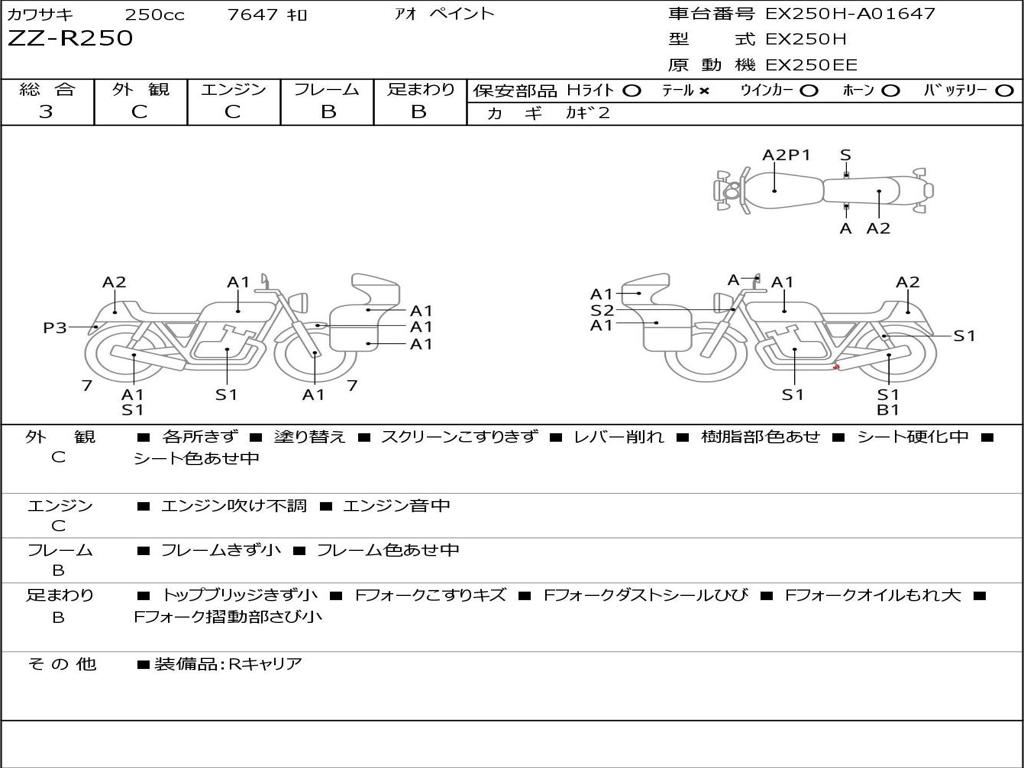 | Номер рамы / VIN | EX250H-A01647 |