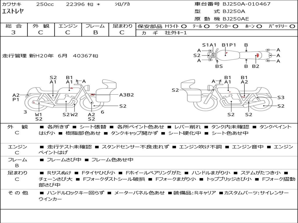 | Номер рамы / VIN | BJ250A-010467 |