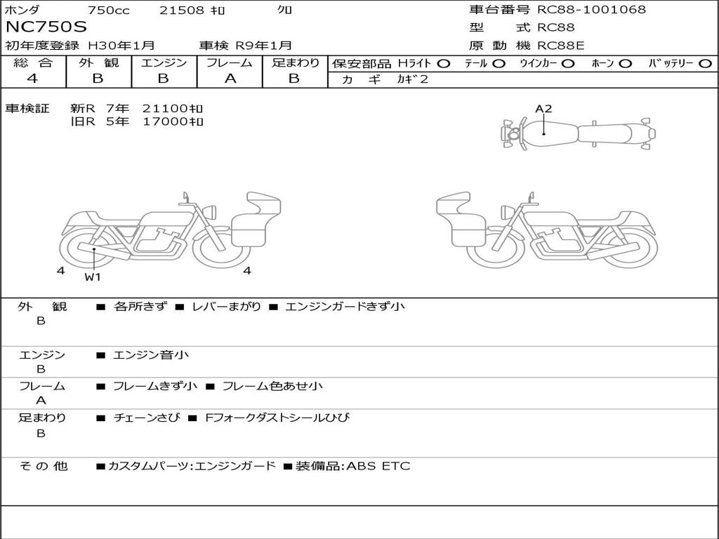 | Номер рамы / VIN | RC88-1001068 |
