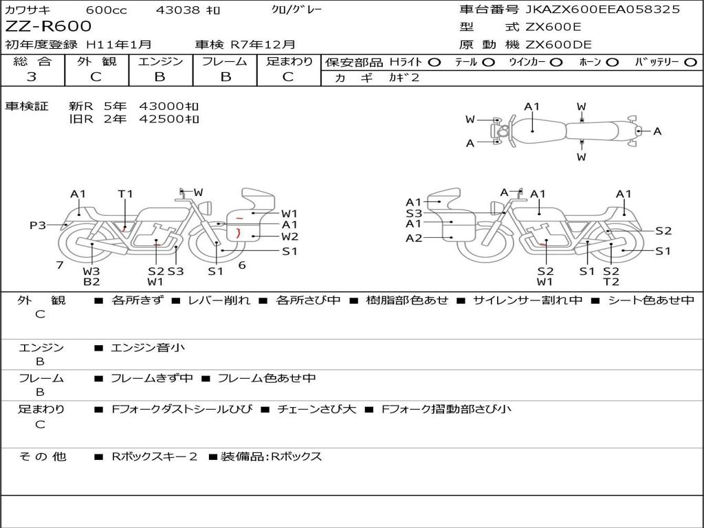 | Номер рамы / VIN | JKAZX600EEA058325 |