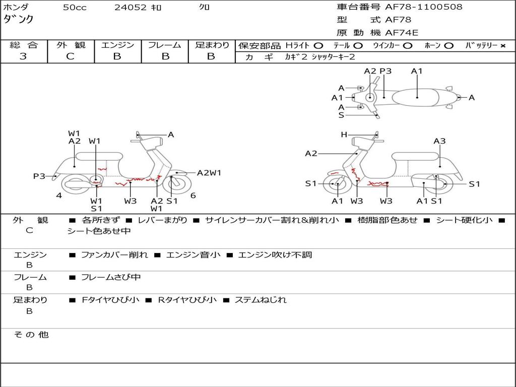 | Номер рамы / VIN | AF78-1100508 |