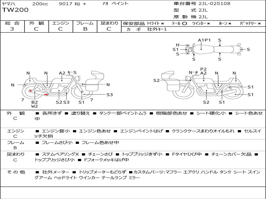 | Номер рамы / VIN | 2JL-025108 |