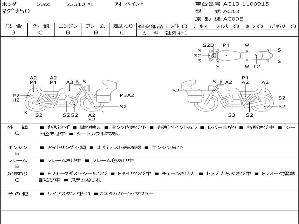 | Номер рамы / VIN | AC13-1100915 |