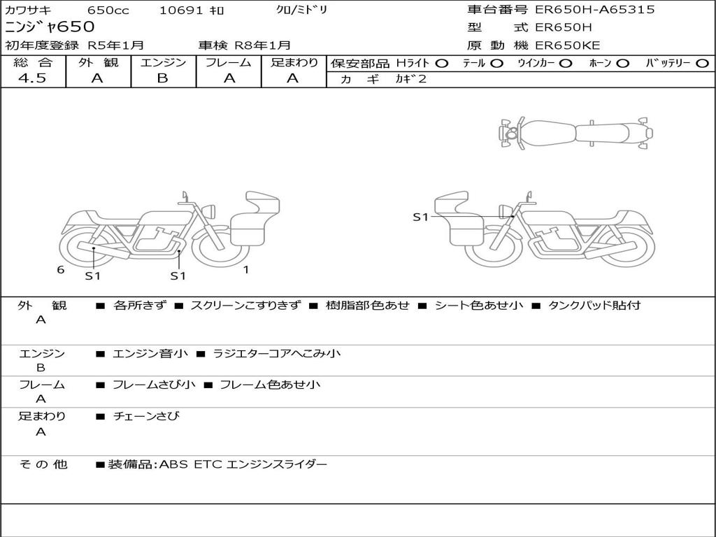 | Номер рамы / VIN | ER650H-A65315 |