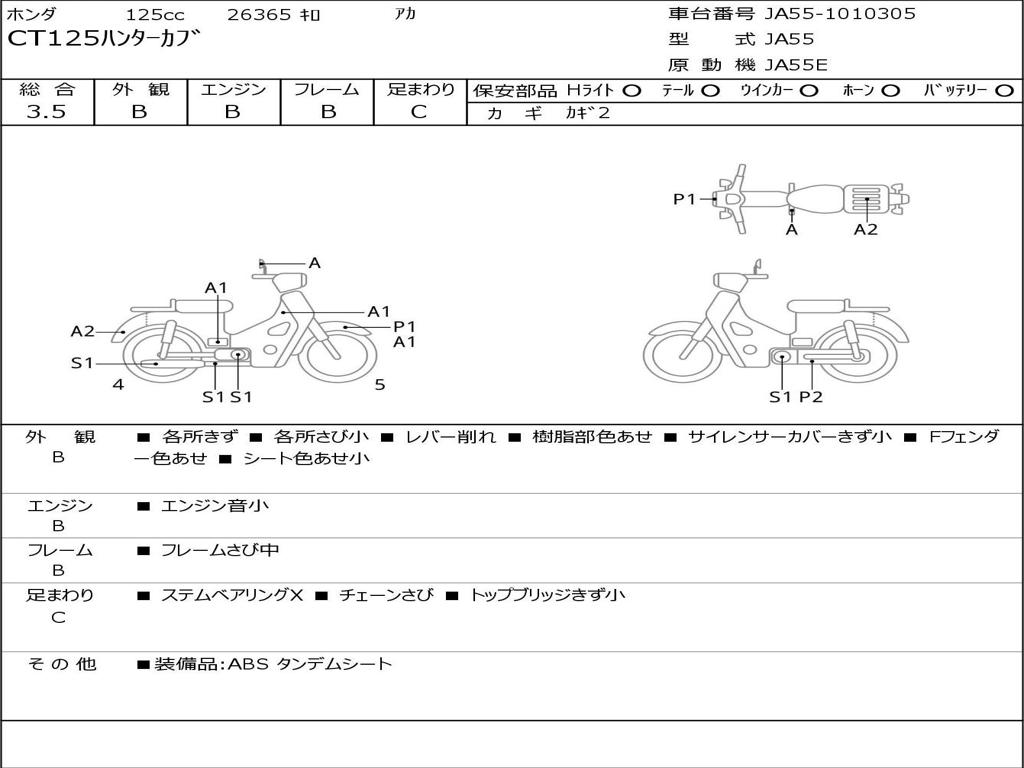 | Номер рамы / VIN | JA55-1010305 |