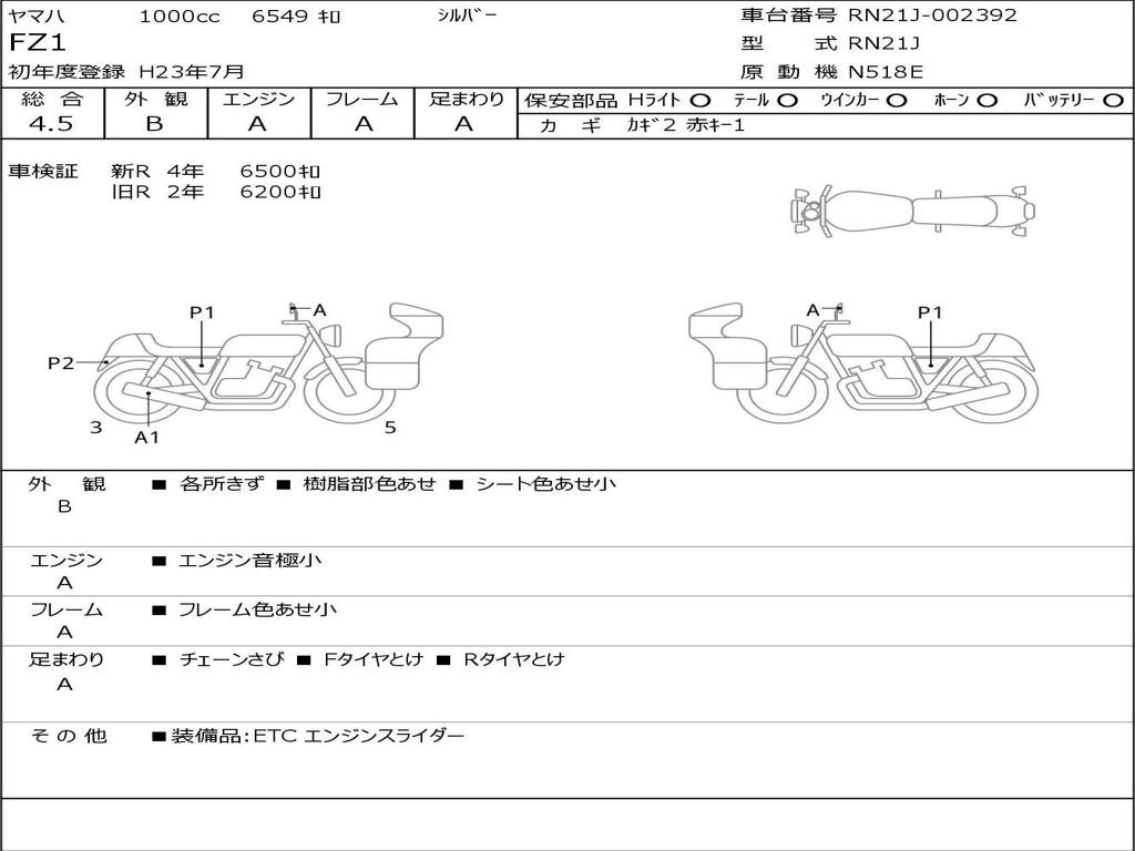 | Номер рамы / VIN | RN21J-002392 |