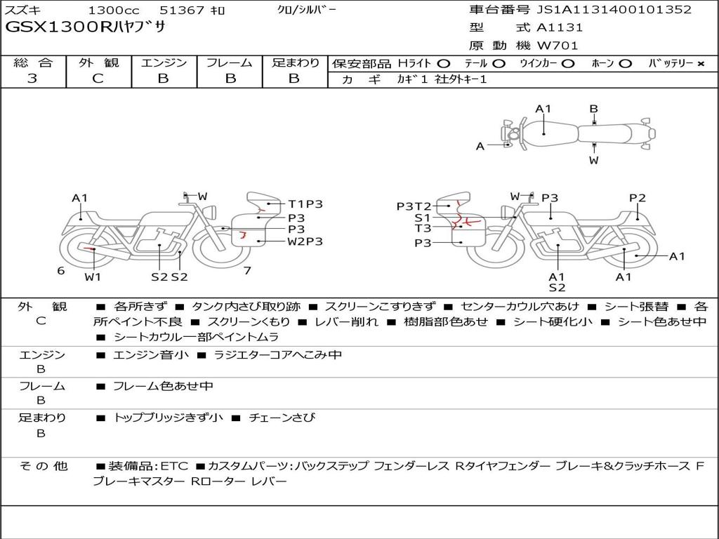 | Номер рамы / VIN | JS1A1131400101352 |
