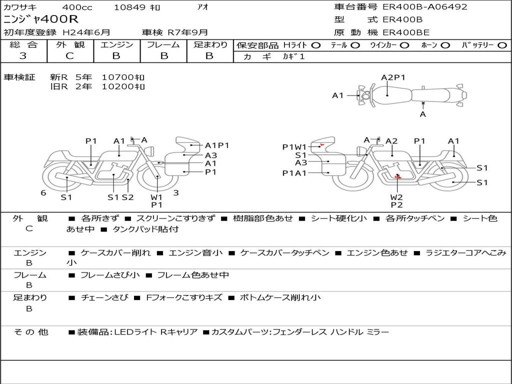 | Номер рамы / VIN | ER400B-A06492 |