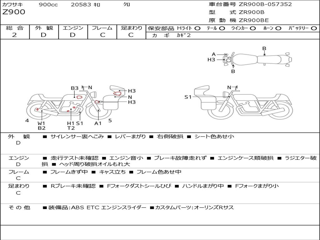 | Номер рамы / VIN | ZR900B-057352 |