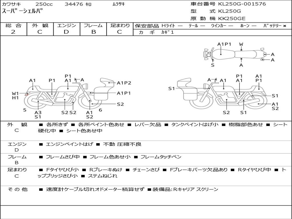 | Номер рамы / VIN | KL250G-001576 |