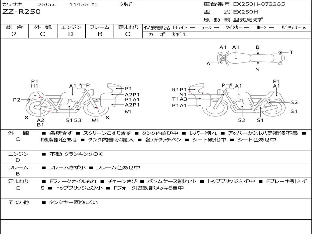 | Номер рамы / VIN | EX250H-072285 |