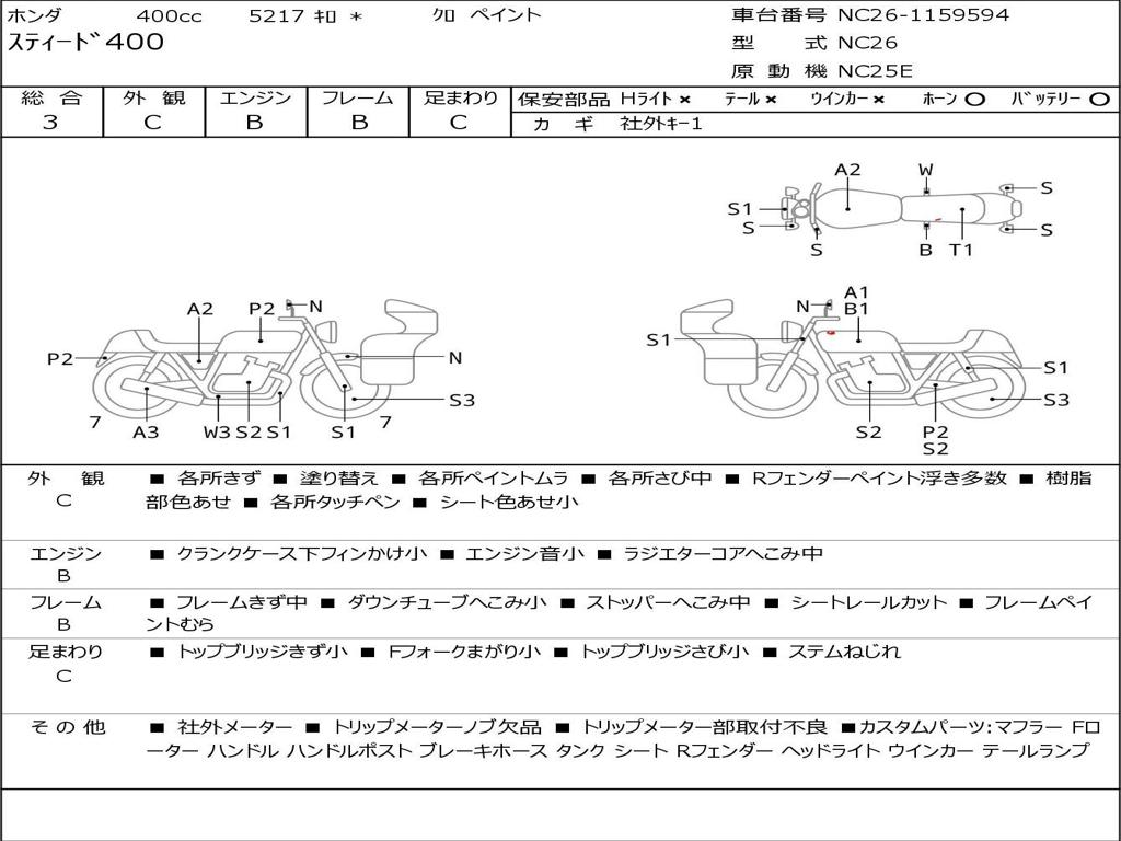 | Номер рамы / VIN | NC26-1159594 |