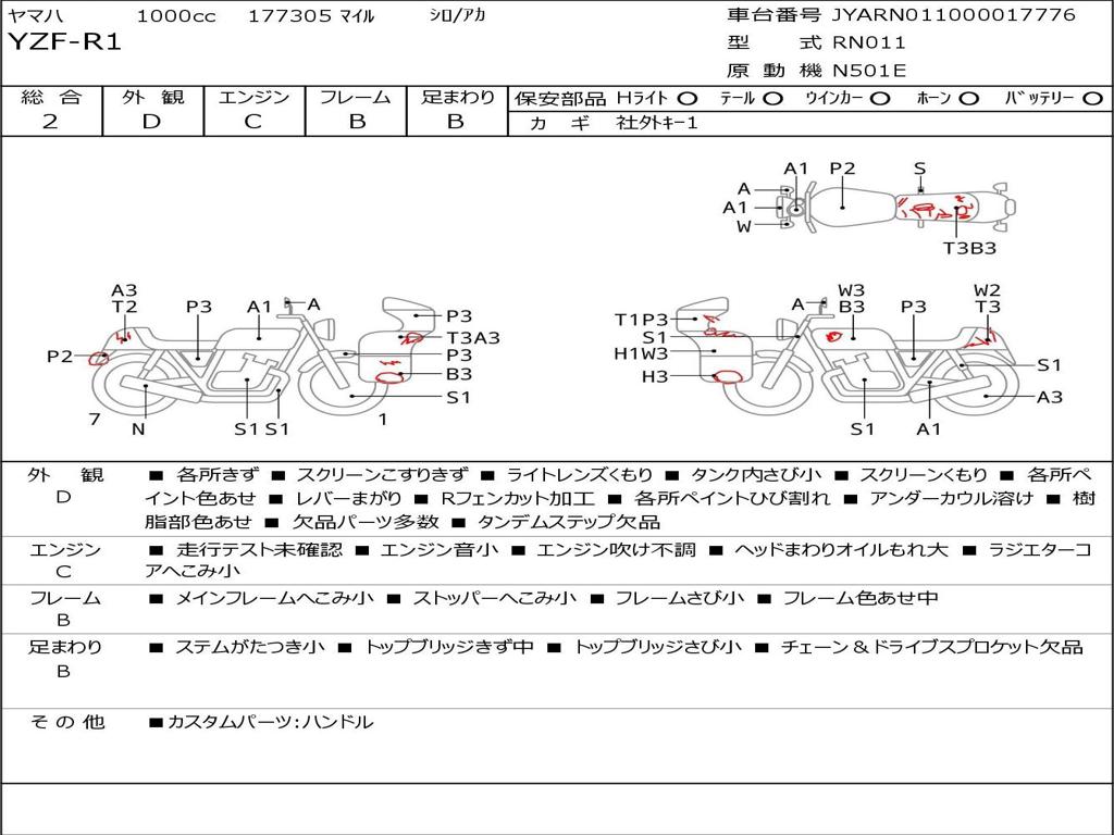 | Номер рамы / VIN | JYARN011000017776 |