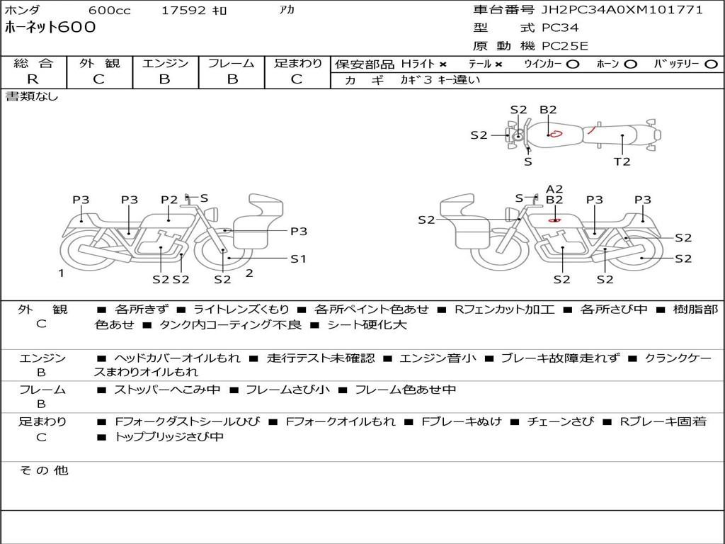 | Номер рамы / VIN | JH2PC34A0XM101771 |