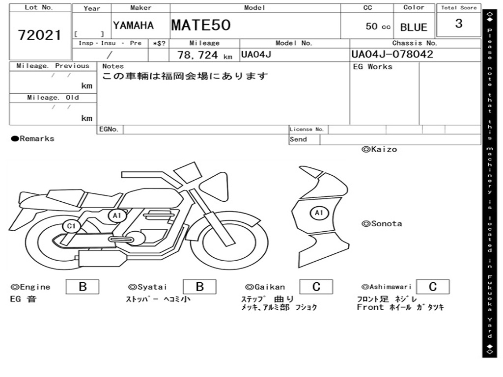 | Номер рамы / VIN | UA04J-078042 |