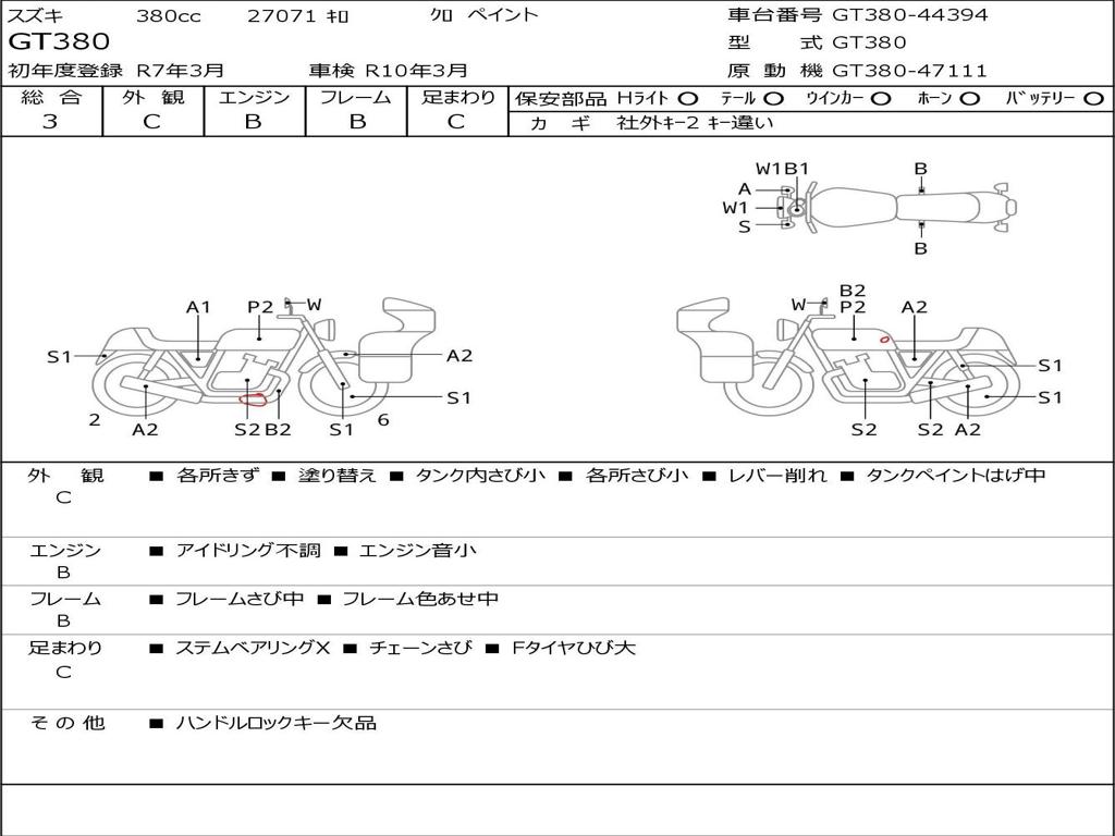 | Номер рамы / VIN | GT380-44394 |