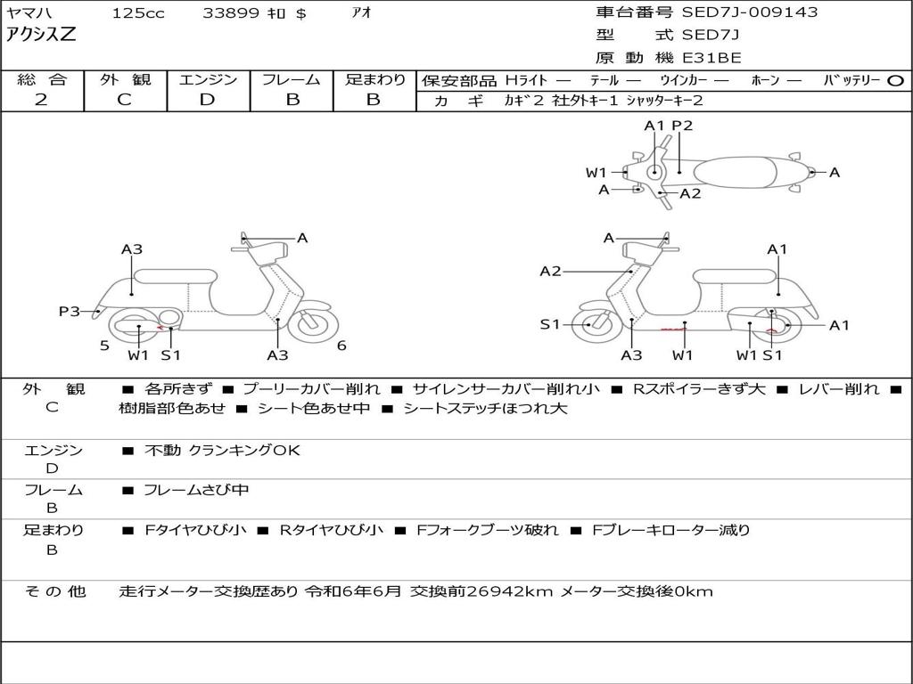 | Номер рамы / VIN | SED7J-009143 |