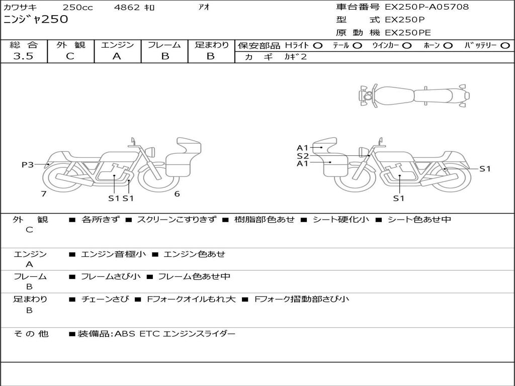 | Номер рамы / VIN | EX250P-A05708 |