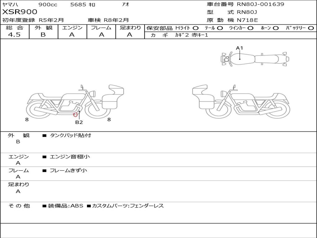 | Номер рамы / VIN | RN80J-001639 |