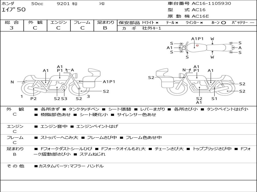 | Номер рамы / VIN | AC16-1105930 |