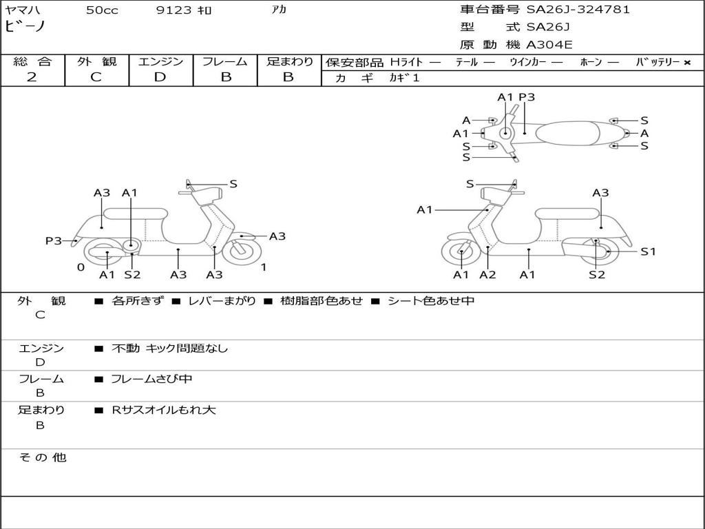 | Номер рамы / VIN | SA26J-324781 |