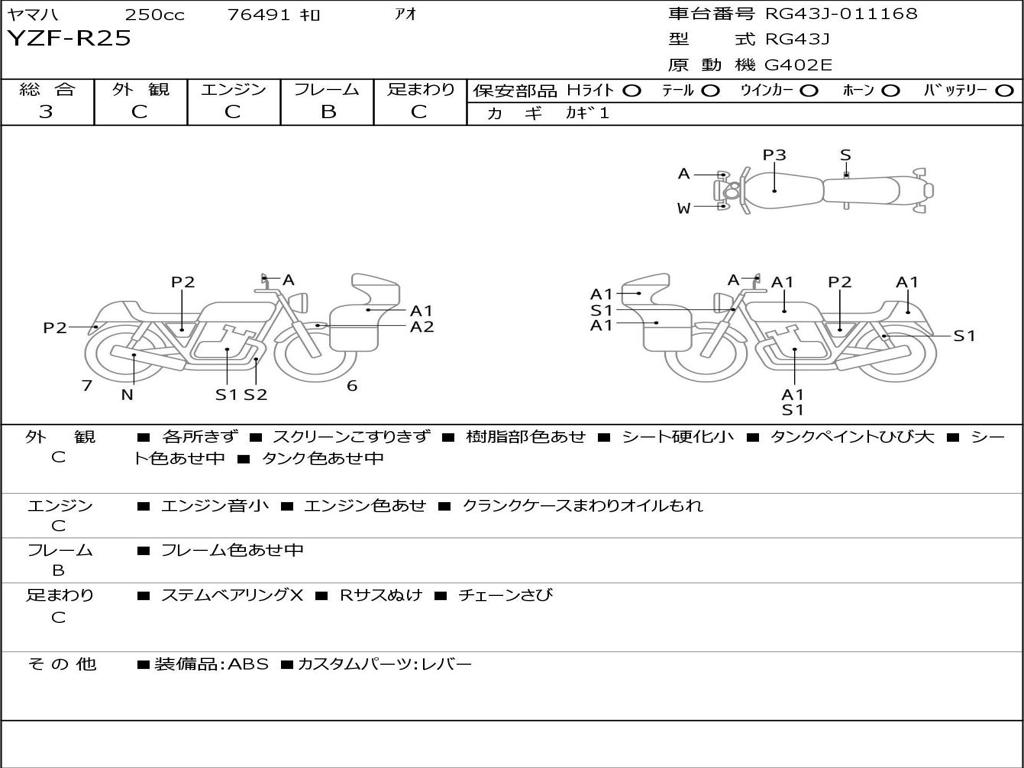 | Номер рамы / VIN | RG43J-011168 |