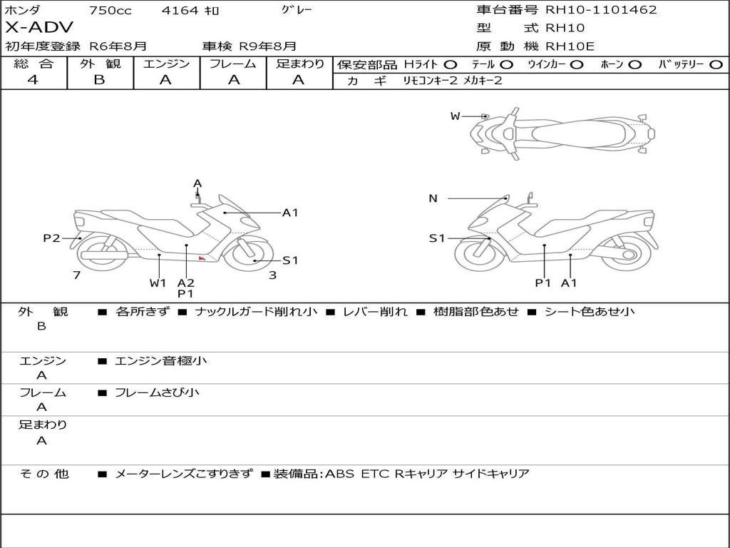 | Номер рамы / VIN | RH10-1101462 |