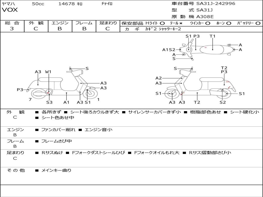 | Номер рамы / VIN | SA31J-242996 |