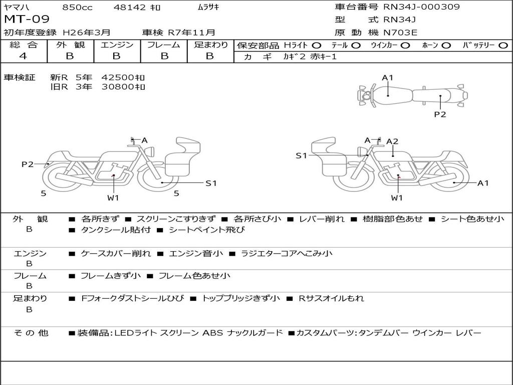 | Номер рамы / VIN | RN34J-000309 |