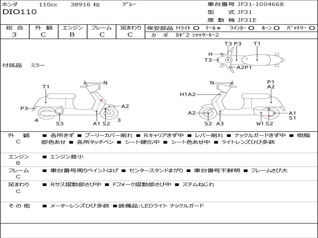 | Номер рамы / VIN | JF31-1004668 |