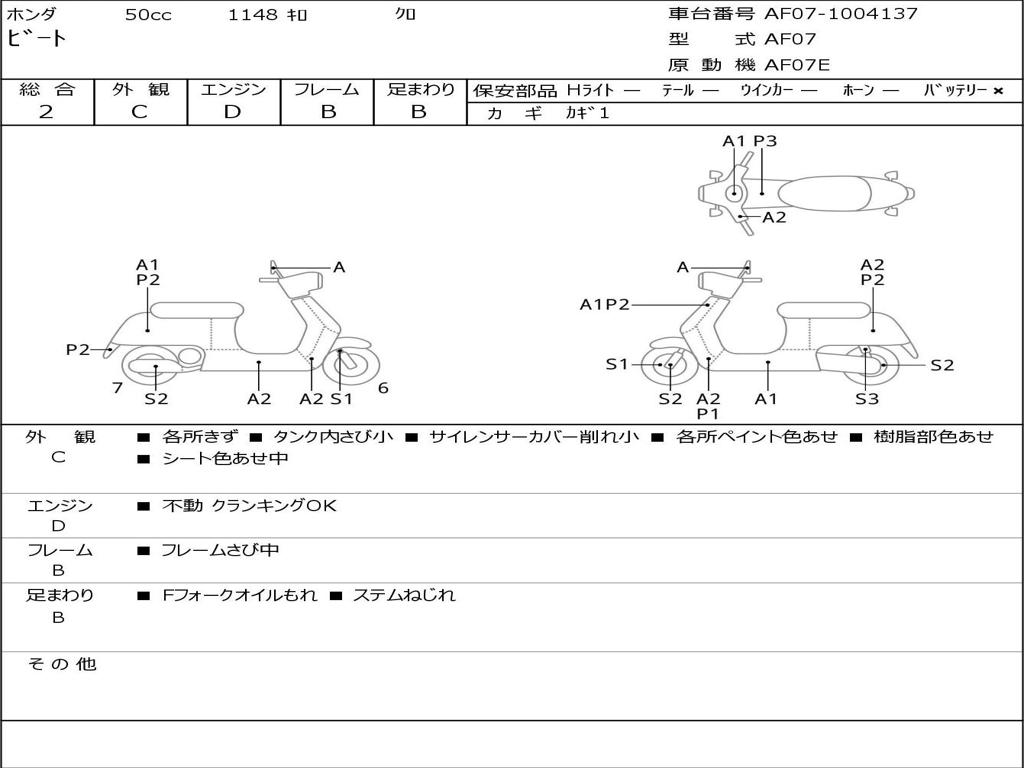 | Номер рамы / VIN | AF07-1004137 |