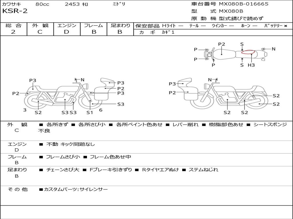 | Номер рамы / VIN | MX080B-016665 |