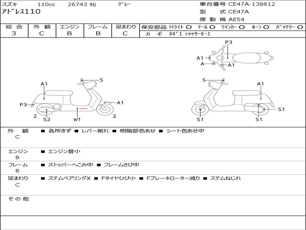| Номер рамы / VIN | CE47A-138812 |