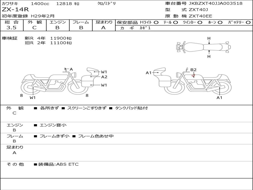 | Номер рамы / VIN | JKBZXT40JJA003518 |