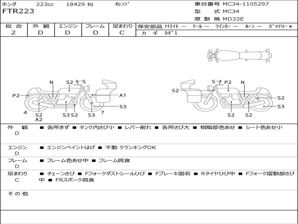 | Номер рамы / VIN | MC34-1105297 |