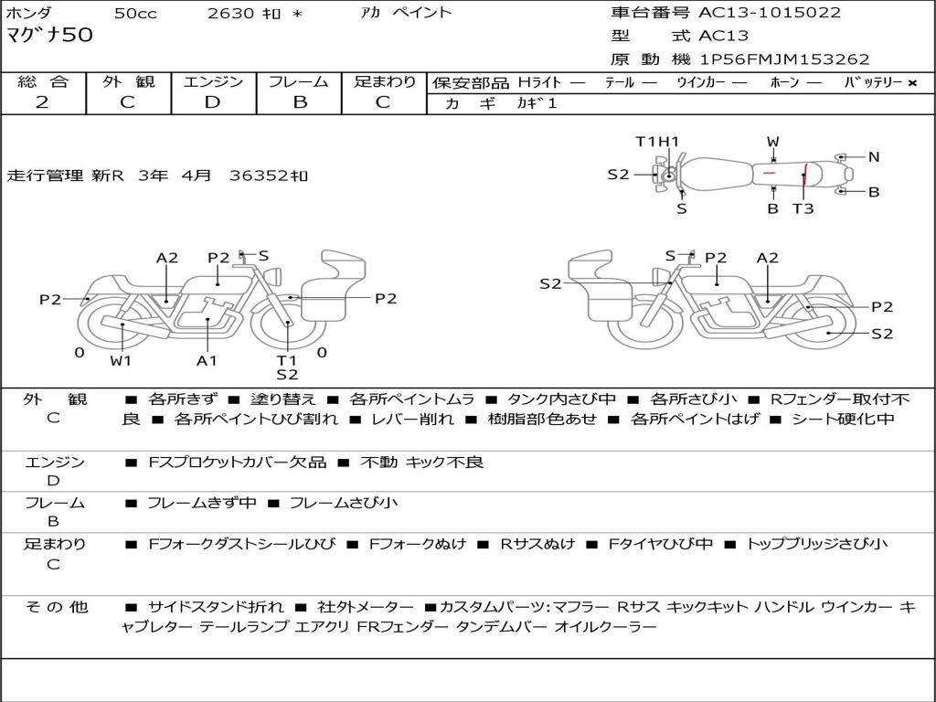 | Номер рамы / VIN | AC13-1015022 |