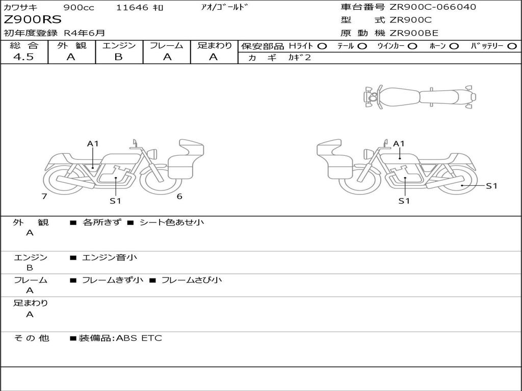 | Номер рамы / VIN | ZR900C-066040 |