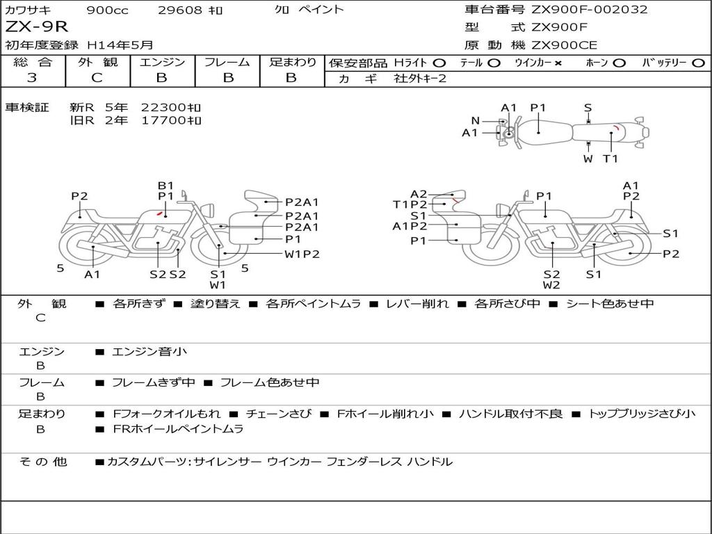 | Номер рамы / VIN | ZX900F-002032 |