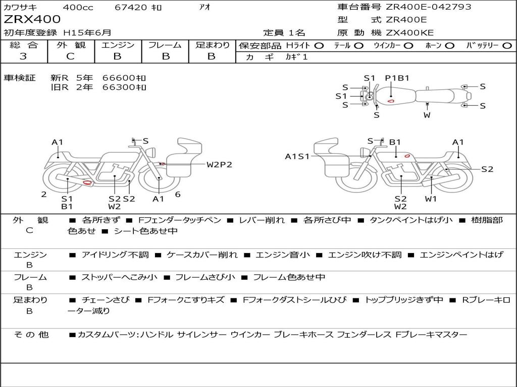 | Номер рамы / VIN | ZR400E-042793 |