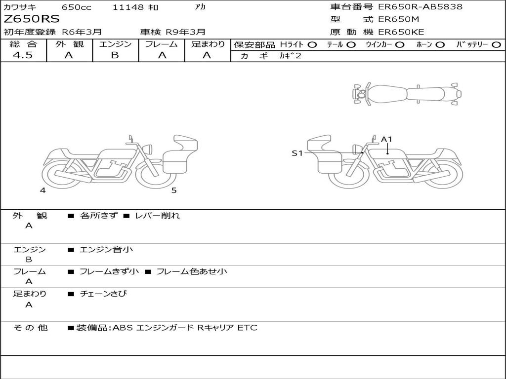 Номер рамы / VIN | ER650R-AB5838 |