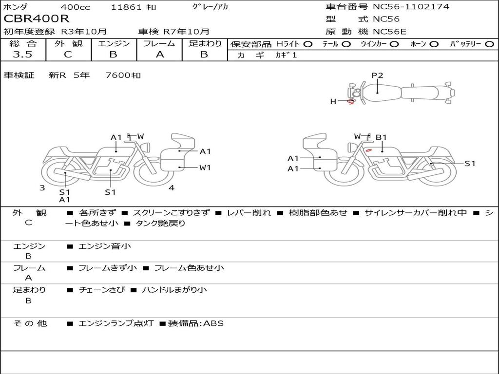 | Номер рамы / VIN | NC56-1102174 |