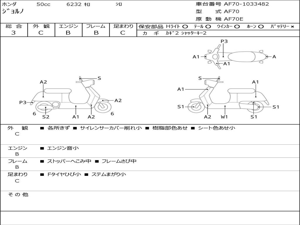 Номер рамы / VIN | AF70-1033482 |