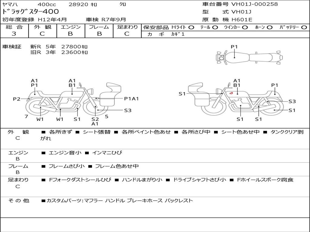 | Номер рамы / VIN | VH01J-000258 |