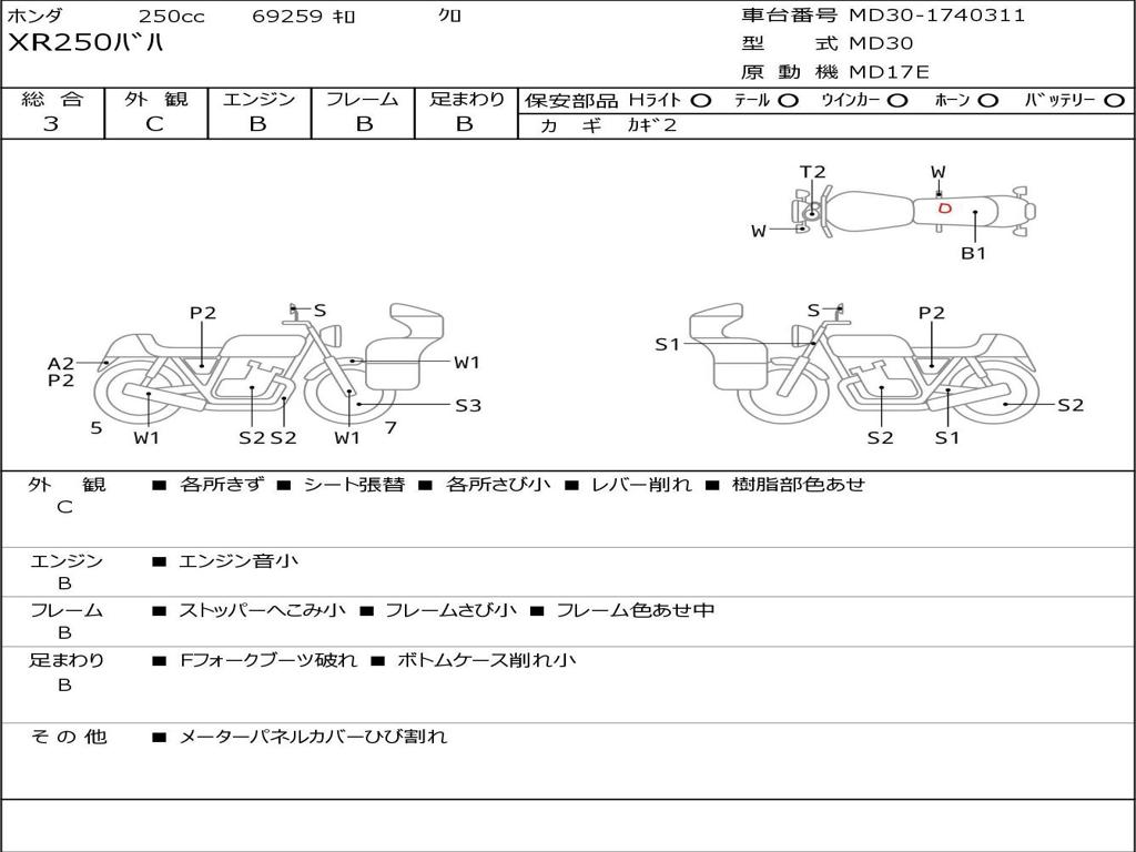 | Номер рамы / VIN | MD30-1740311 |