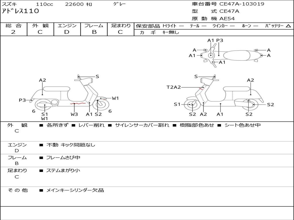 | Номер рамы / VIN | CE47A-103019 |